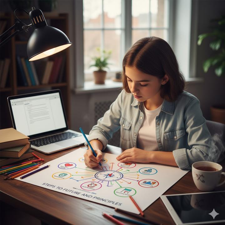По итогам обучения подросток оформляет карту ценностей и целей, свой первый жизненный план с понятными шагами на ближайшие годы.