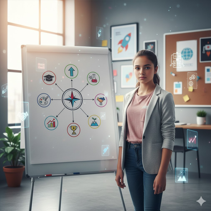 Исследует свои интересы, сильные стороны и ценности, знакомится с разными направлениями профессий и начинает формировать личный вектор развития.
